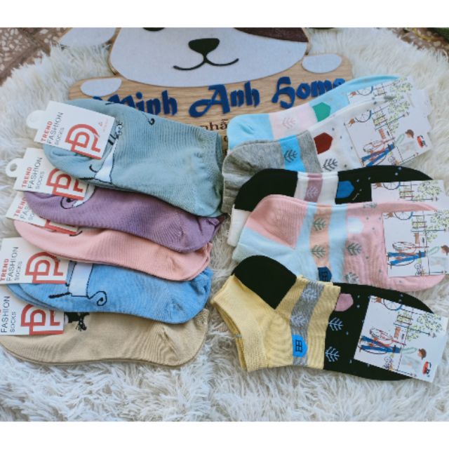 1 đôi vớ chân tất chân cổ ngắn in hình vải cotton 4 chiều