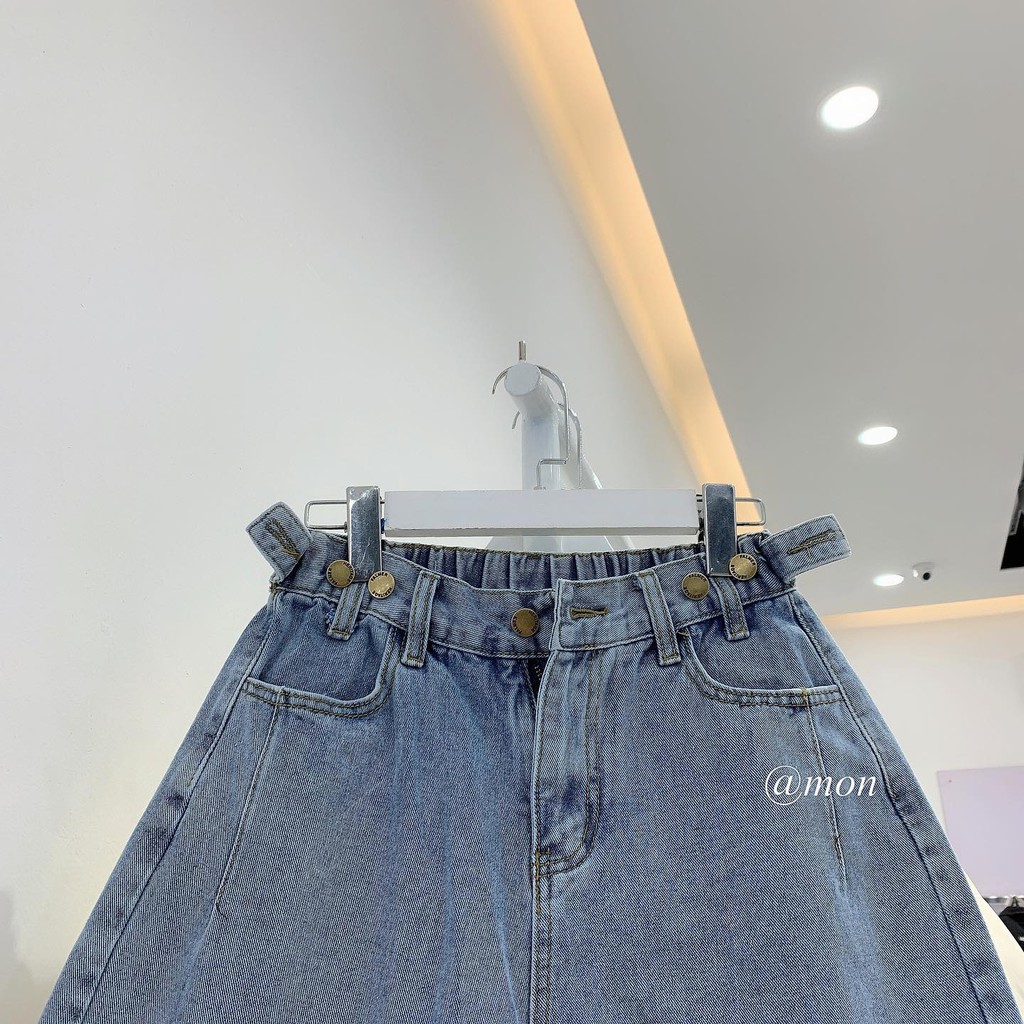 200461 Quần ngố jeans lửng ulzzang nữ phối chun sau co giãn thoải mái màu xanh có size S,M,L,XL