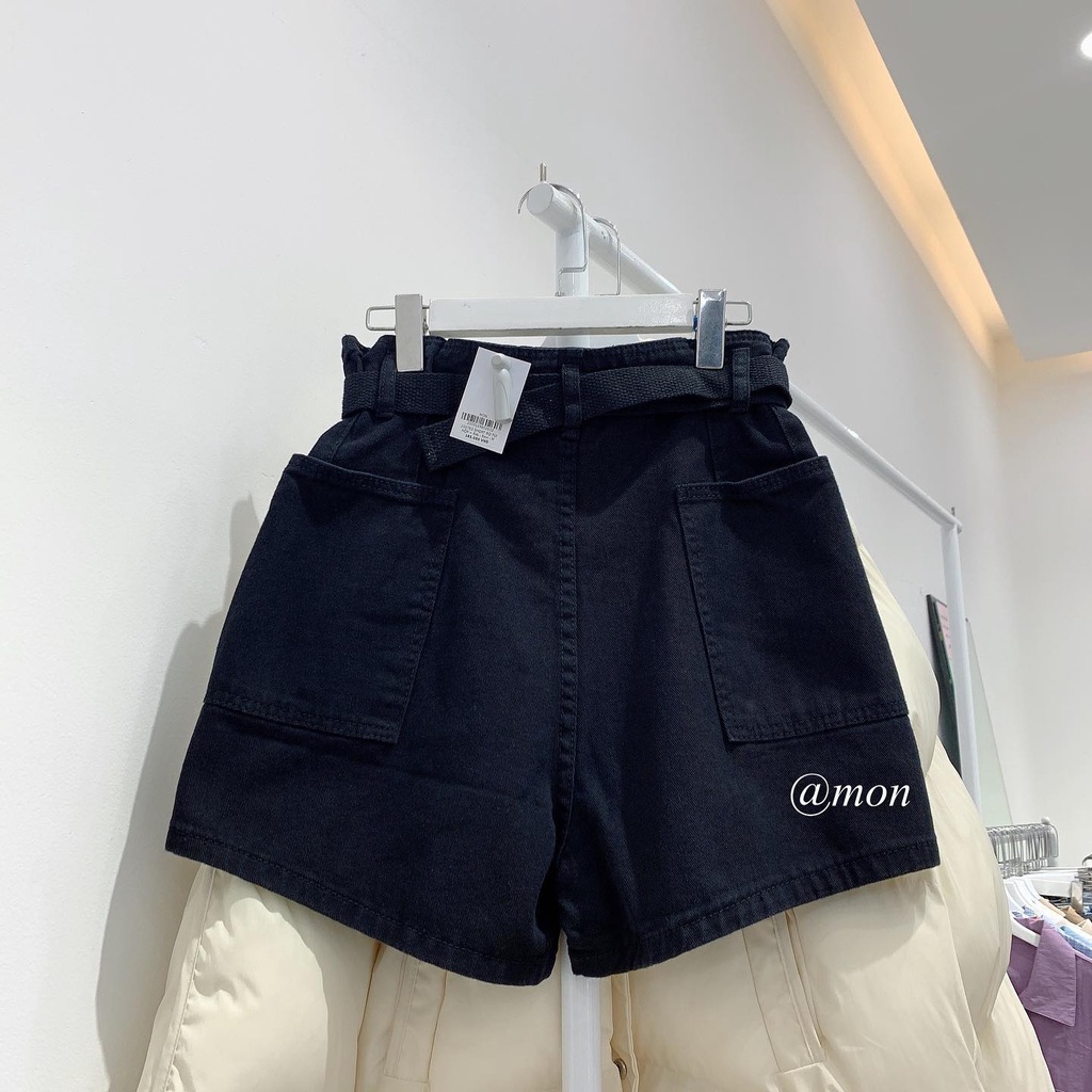 Giới thiệu 200753 Quần short bò nữ ulzzang cạp cao màu đen trơn tặng kèm đai có size