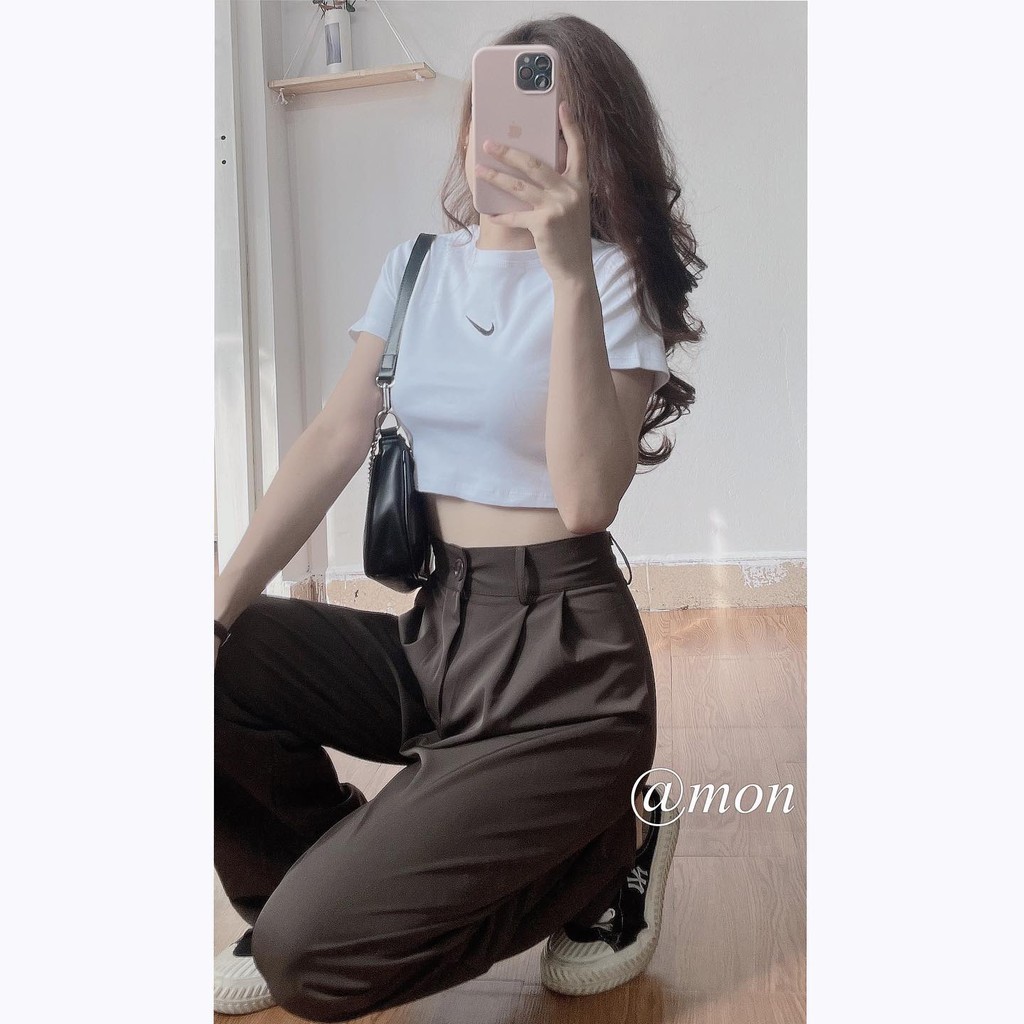 Giới thiệu 2101192 Quần vải ống rộng dáng suông dài cho nữ phong cách ulzzang basic chất vải trượt mềm mướt