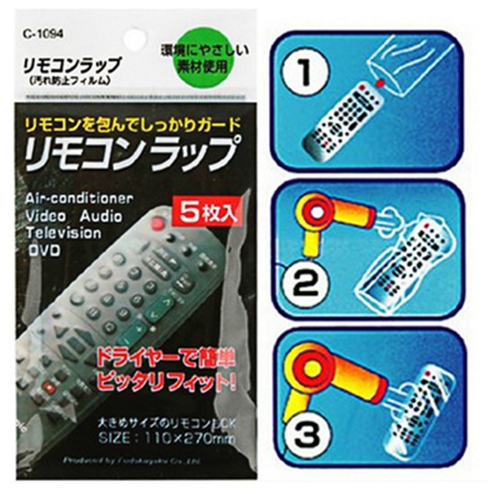 • Cho điều khiển vào, gấp và dán cho vừa khít điều khiển sau đó lấy máy sấy, sấy hơi nóng lên mặt trên điều khiển giúp nilon co lại và ốp sát vào bề mặt nút. Cách sử dụng cực kỳ đơn giản và tiện lợi.