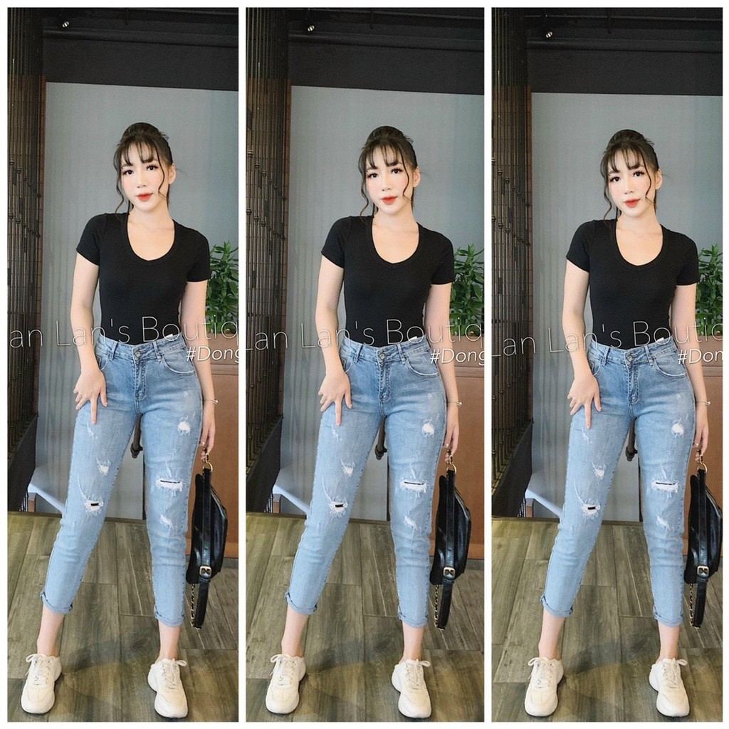 [60kg~90kg] Quần jean nữ dài 9 tấc lưng cao, co dãn mạnh, rách đẹp bụi bặm đẹp rẻ hottrend 3866