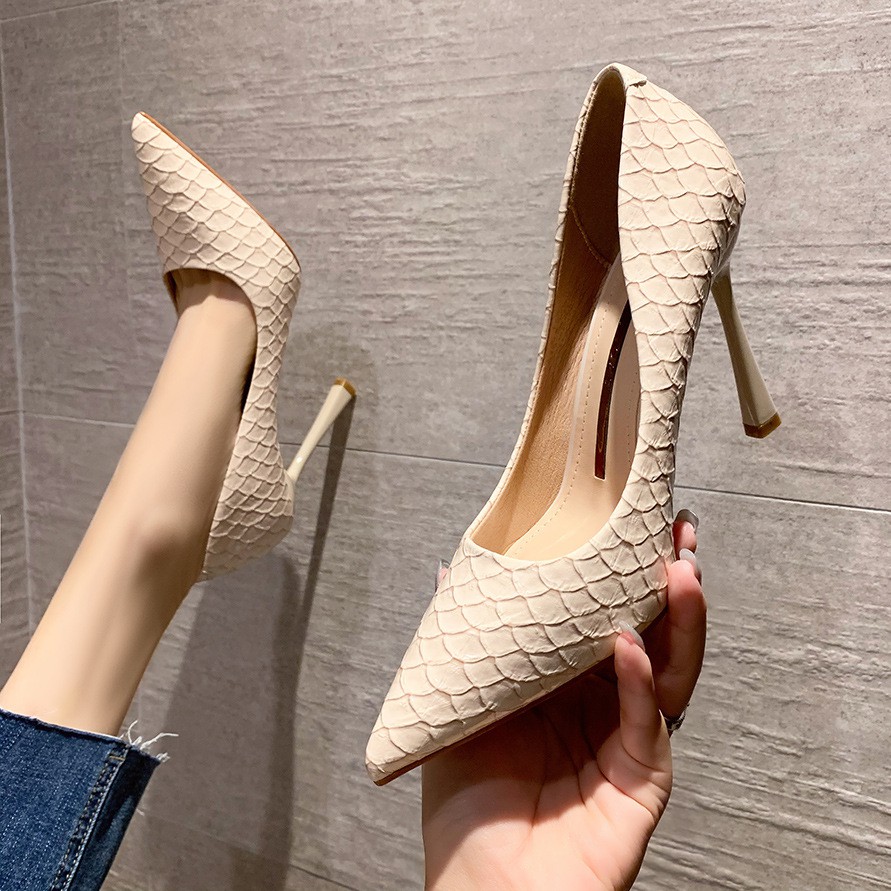 6999-1 giày cao gót kẻ vây cá cá tính