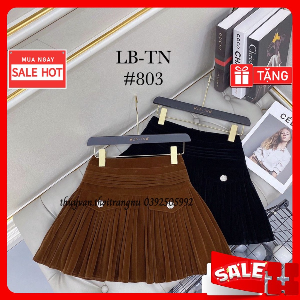 Giới thiệu #803 Chân váy nhung xếp ly cúc hoa đá hàng cao cấp