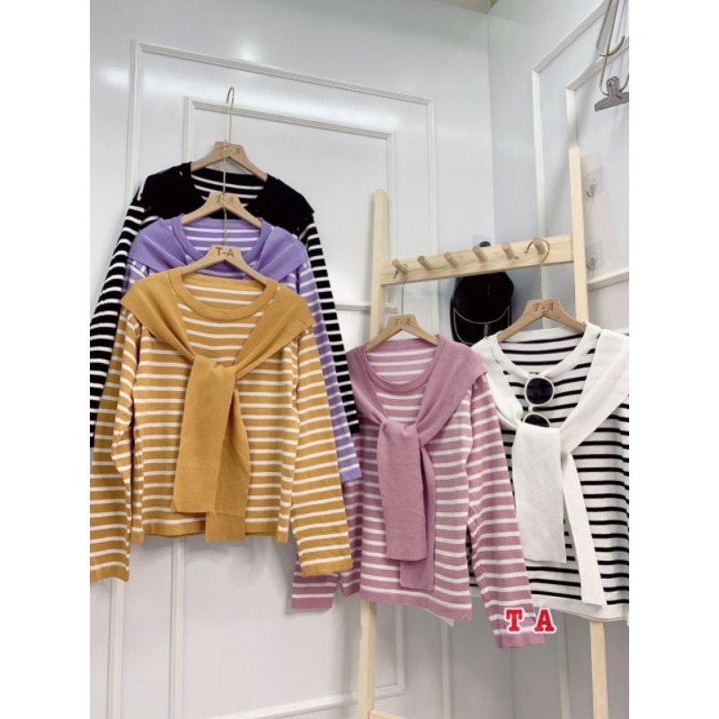 Thời Trang Nữ > Đồ truyền thống > Áo || Áo len kẻ ngang kèm khăn hàng QC