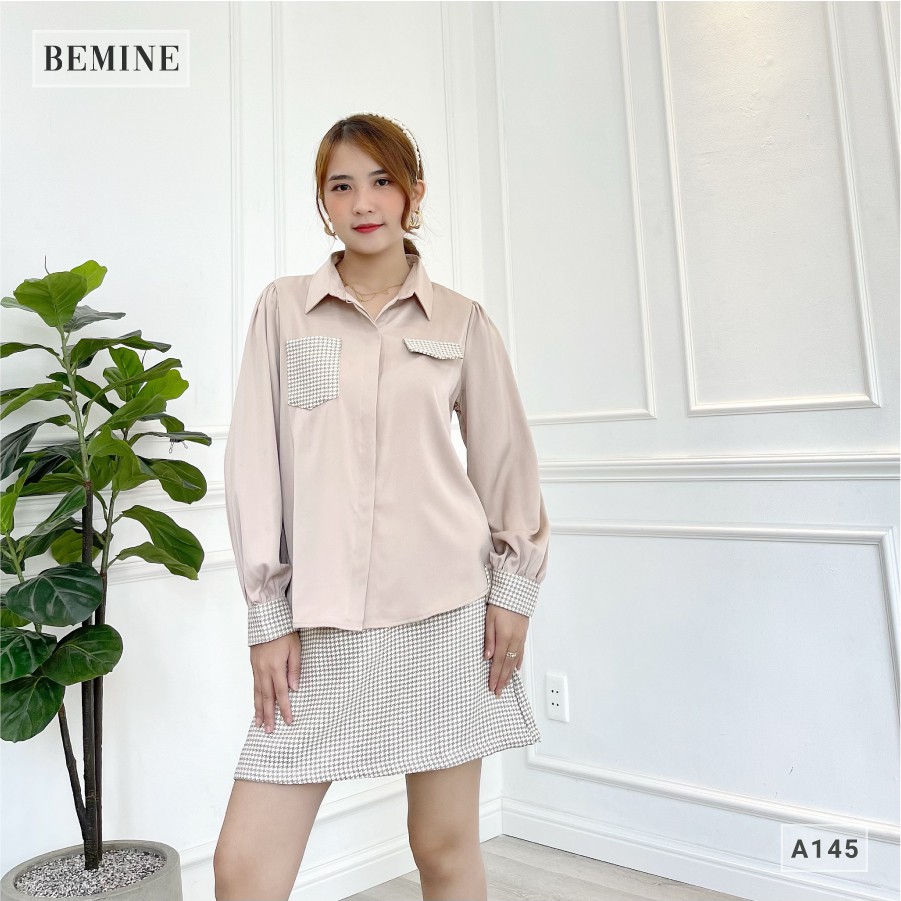 Giới thiệu Áo sơ mi nữ công sở tay dài phối túi họa tiếc caro thanh lịch BEMINE A145DA