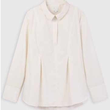 - Áo có điểm nhấn là các nếp gấp, áo có kiểu dáng vừa vặn, cổ điểm hàng cúc ẩn, cổ tay áo có khuy.