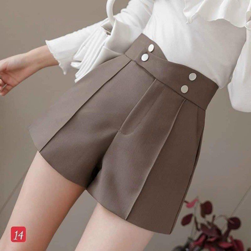 Giới thiệu [ AN MỘC ] Quần Short Đùi Cạp V Phối 4 Khuy Vàng Gân Giữa Sang Chảnh Cho Nữ