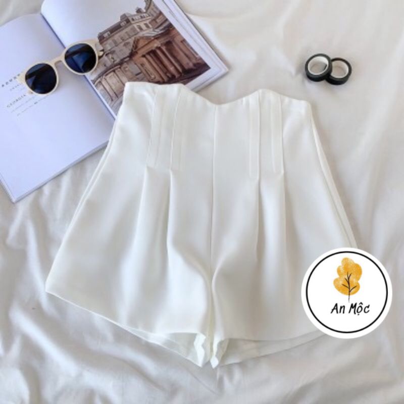 Giới thiệu [AN MỘC] Quần short đùi nữ ống rộng cạp lượn sóng xếp ly kép tôn dáng