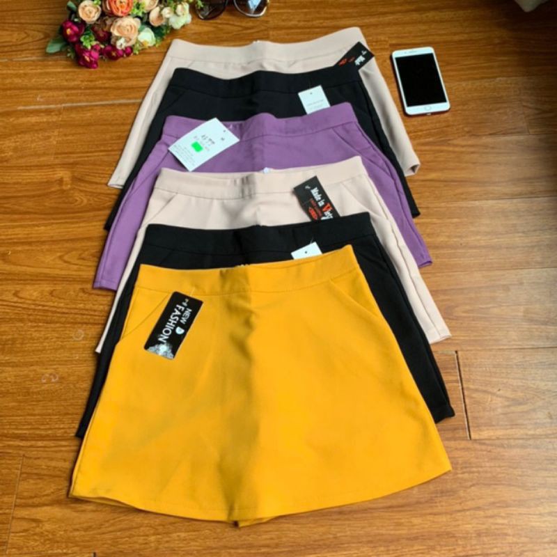 Giới thiệu [AN MỘC] Quần short đùi vạt giả váy chứ A dáng trơn cho nữ