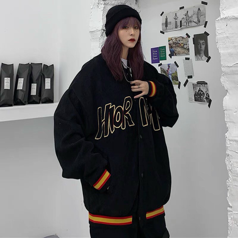 •[Ảnh Thật] Áo Khoác Bomber Nam Nữ Form Rộng Kaki Nhung Thêu Phong Cách Ulzzang AK209 Unisex