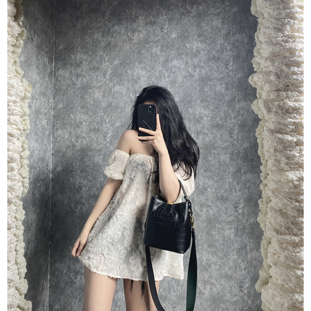 [Ảnh Thật] Áo Nữ Bệt Chun Voan Hoa Nổi 2 Màu Be/Trắng [LanHin90]