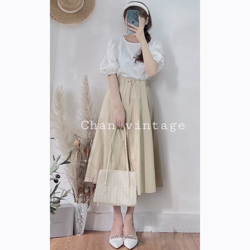 [Ảnh thật] Áo sơ mi bèo nữ cổ tròn cộc tay bồng tiểu thư - Áo babydoll trơn kiểu tay bồng