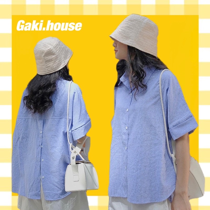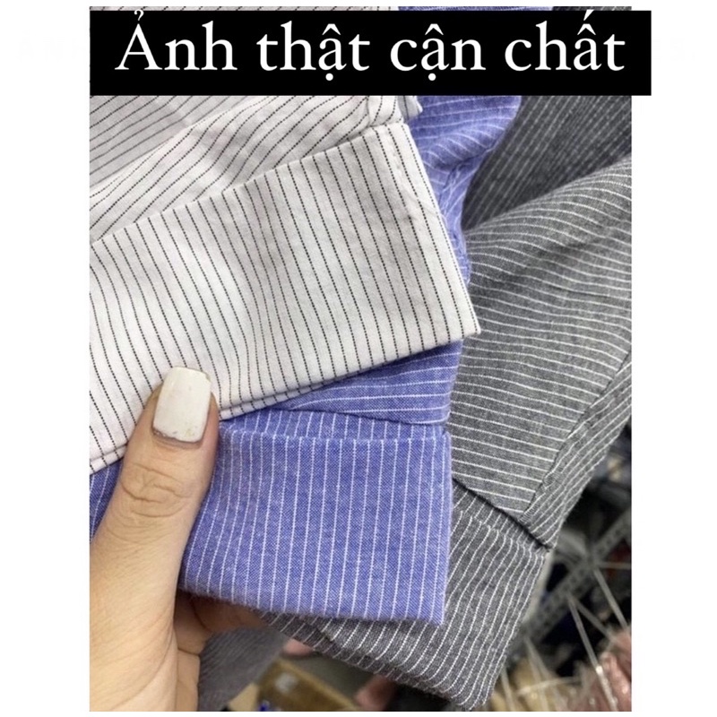 Thời Trang Nữ > Áo > Áo sơ mi || [ Ảnh thật ] ÁO SƠ MI HÀN QUỐC FORM RỘNG KẺ SỌC CÀI KHUY SAU