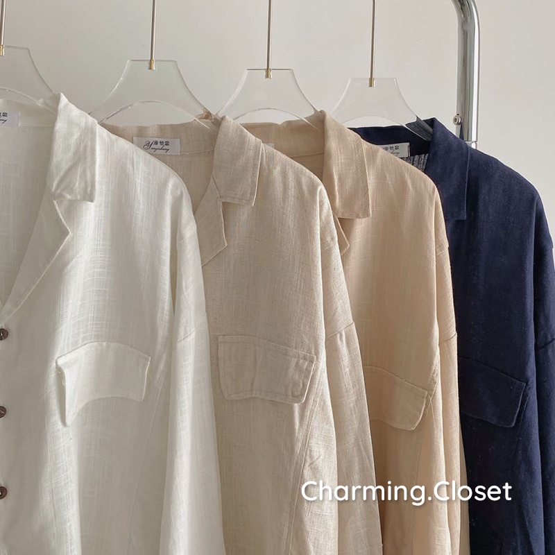 Giới thiệu [Ảnh thật] Áo Sơ Mi Nữ Khuy Gỗ Cổ Vest Thanh Lịch Form Rộng, Áo Sơ Mi Chất Đũi Mềm