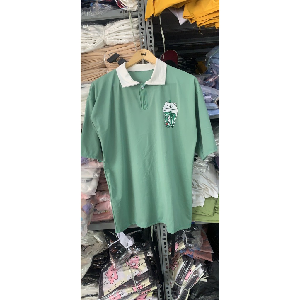 Giới thiệu [Ảnh Thật] Áo thun tay lỡ Trà sữa áo phông tay lỡ cổ bẻ unisex nam nữ form rộng oversize basic tee phong cách Ulzzang