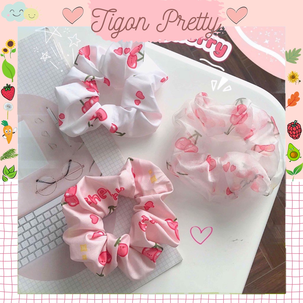 [ Ảnh Thật] Cột Tóc Vải Scrunchies Cherry