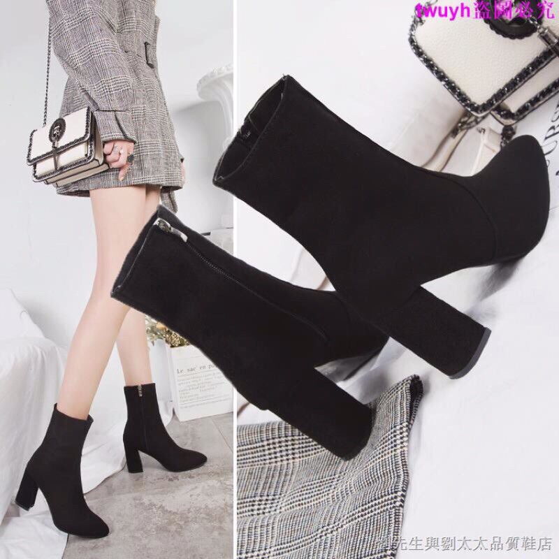 Giày Dép Nữ > Bốt > Bốt thời trang || [Ảnh thật cuối] Bốt nữ da lộn khoá cạnh hàng xịn gót vuông cao 8F