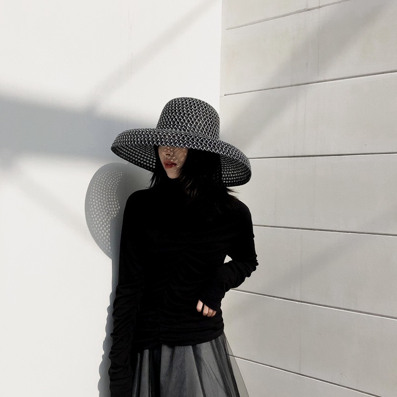 Giới thiệu [Ảnh thật] Mũ cói dáng Hepburn lưới vành rộng 2 màu đi biển hàng đẹp loại 1