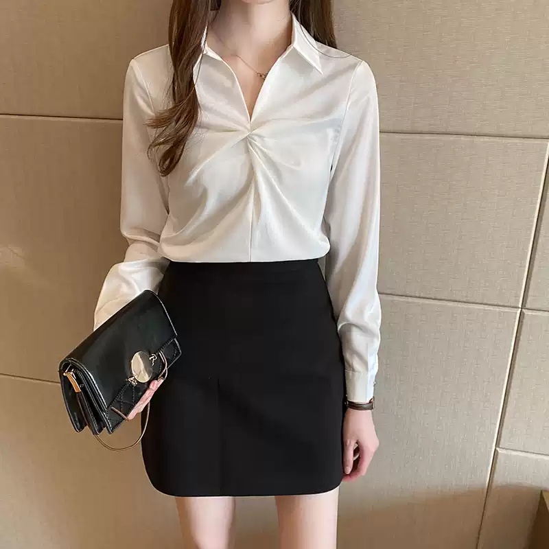 Thời Trang Nữ > Áo > Áo sơ mi || [ẢNH THẬT-NHIỀU MẪU] Áo sơ mi nữ ⚡𝗙𝗿𝗲𝗲 𝘀𝗵𝗶𝗽⚡ nhúm ngực trắng lụa hàn mát mịn phong cách Hàn Quốc
