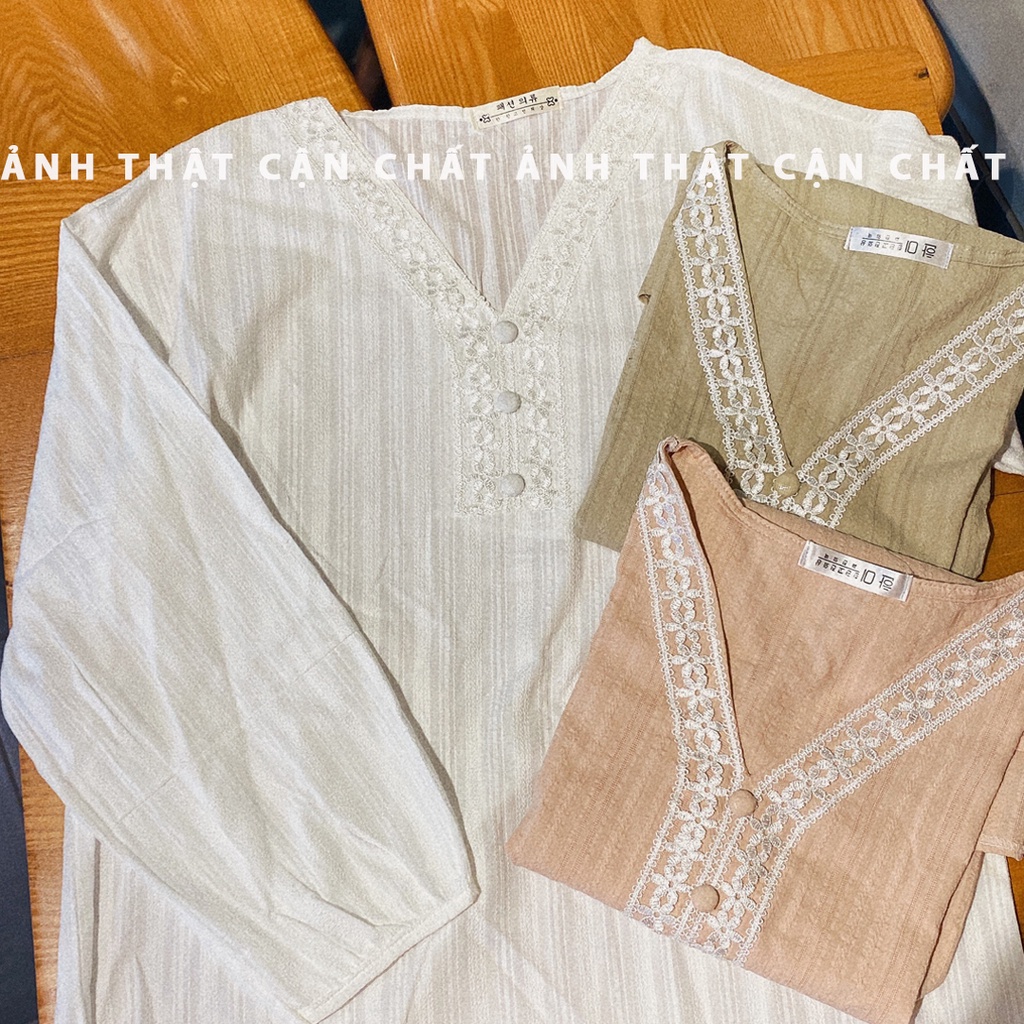 Giới thiệu [Ảnh thật/Video] Áo sơ mi kiểu cổ tim phối khuy bọc phong cách Hàn Quốc - Hàng QC