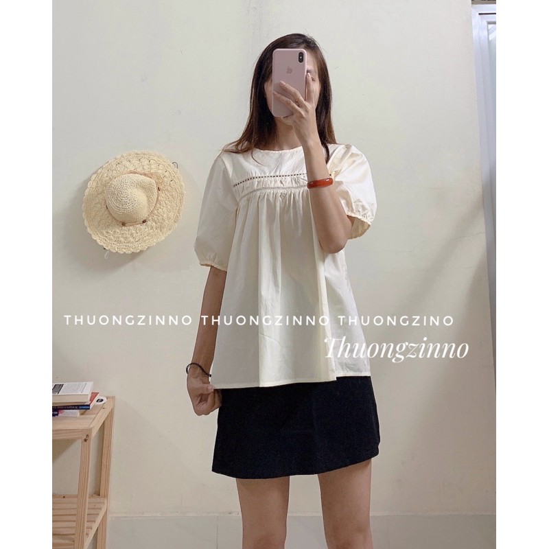 [ẢNH THẬT/VIDEO]ÁO SOMI BABYDOLL CỘC TAY THIẾT KẾ VIỀN REN NGANG TIỂU THƯ ÁO SƠ MI QUẢNG CHÂU