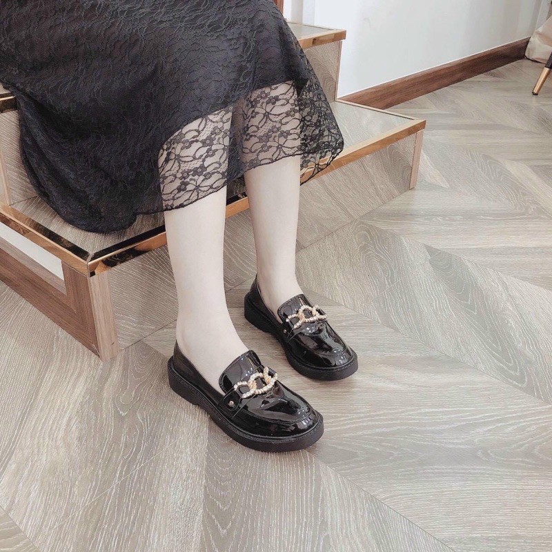 Giới thiệu [Ảnh thật+ video] Giày lười nữ đẹp rẻ, Giày Doc da bóng tag lắc đính đâ đế khủng 4p siêu chất