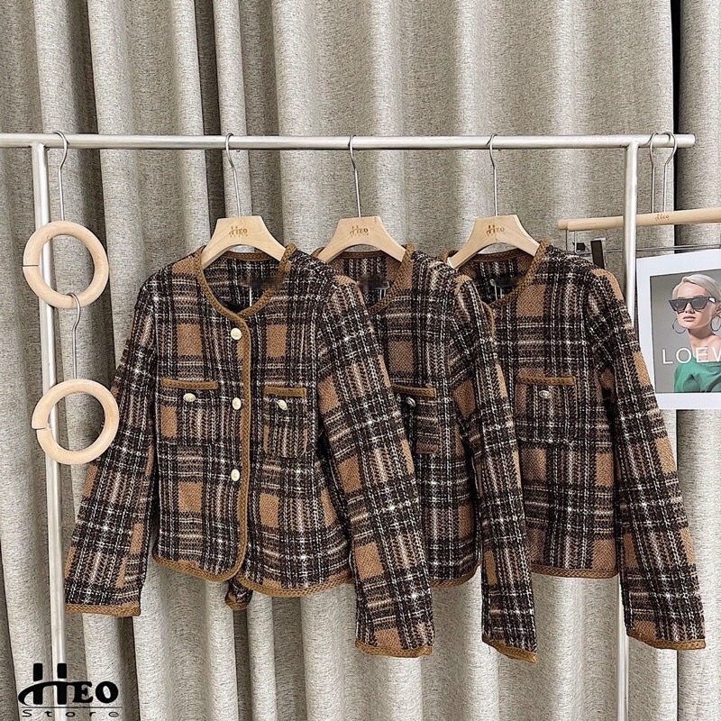 Giới thiệu [Ảnh+ video tự chụp](nhập tutu78 giảm ngay 30k) Áo khoác dạ nữ dài tay TWEED kẻ nâu cúc ngọc