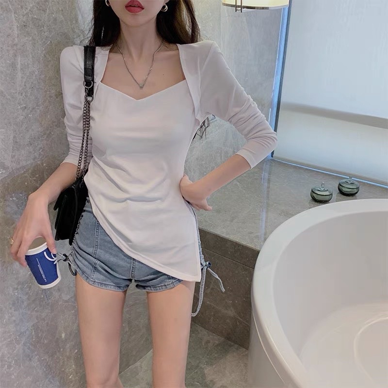 Thời Trang Nữ > Áo > Áo thun || ANU554 - ÁO THUN NỮ CỔ U VẠT LỆCH XẺ TÀ DÀI TAY