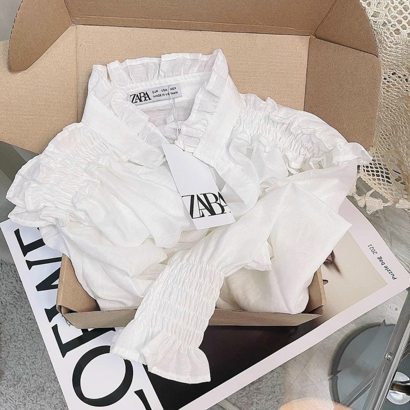 Giới thiệu ANU676 - ÁO SƠ MI NỮ TRẮNG CỔ BÈO CHUN TAY
