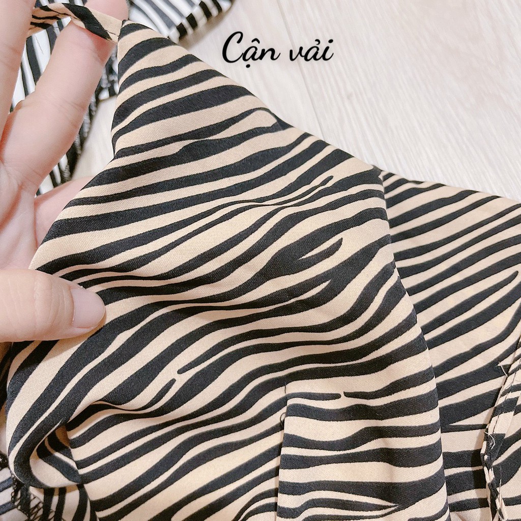 Áo 2 dây yếm cổ đổ phối màu vằn cột nơ lưng cực xinh , chất phi bóng mềm mịn