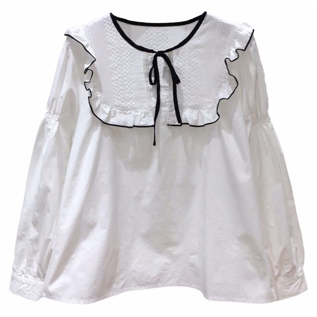 Thời Trang Nữ > Áo > Áo sơ mi || Áo babydoll trắng viền đen bèo ngực