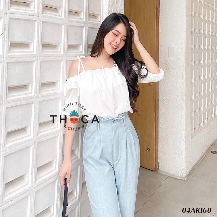 Giới thiệu Áo babydoll trễ vai cột nơ tầng trắng, nude, xanh mint THOCA HOUSE trẻ trung, mặc đi chơi, đi làm