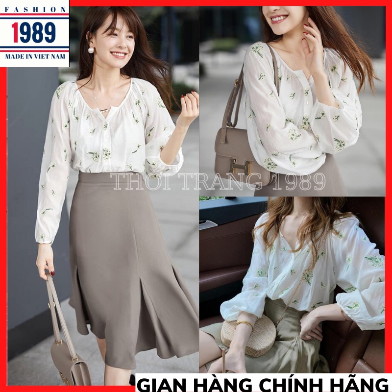 📍THÔNG TIN SẢN PHẨM Áo babydoll dáng rộng thêu hoa tay bồng ẢNH THẬT chất đũi mềm min thoáng mát ULZZANG hàn quốc THỜI TRANG 1989
