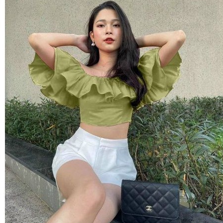 Áo bẹt vai viền bèo tay ngắn xòe siêu hot(U.NG)