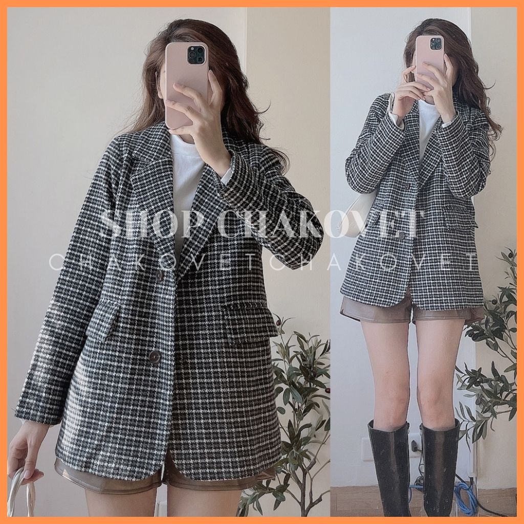 Giới thiệu Áo blazer dạ kẻ nữ AD8113, kiểu áo vest dạ kẻ túi nắp thiết kế 2 lớp dài tay 2 cúc đẹp cá tính style hàn quốc