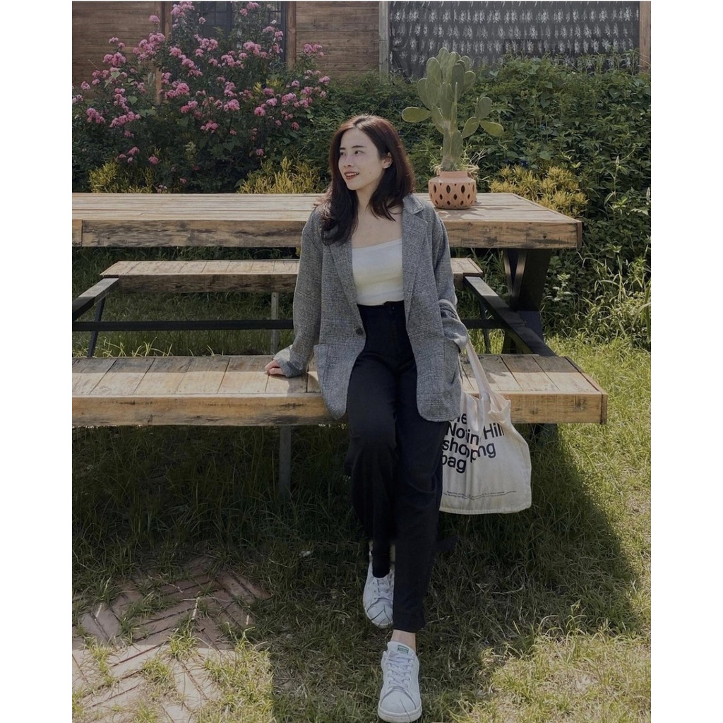Giới thiệu Áo Blazer Nữ 2 Lớp Dài Tay , Áo Vest dạ lông kẻ khoác ngoài Daski