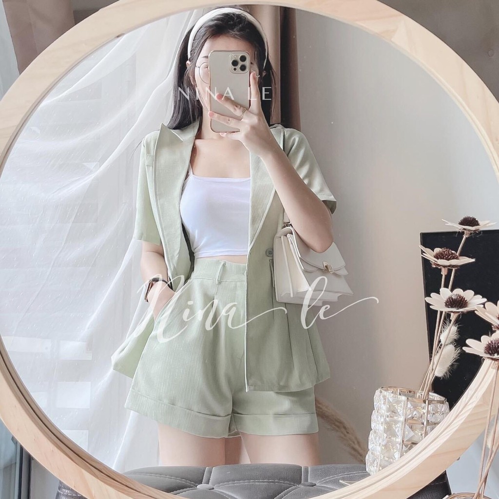 Giới thiệu Áo Blazer - Vest Cộc Tay Dáng Rộng Chất Mát áo blazer tay ngắn phong cách Hàn Quốc sang chảnh cực phẩm sét vest xanh
