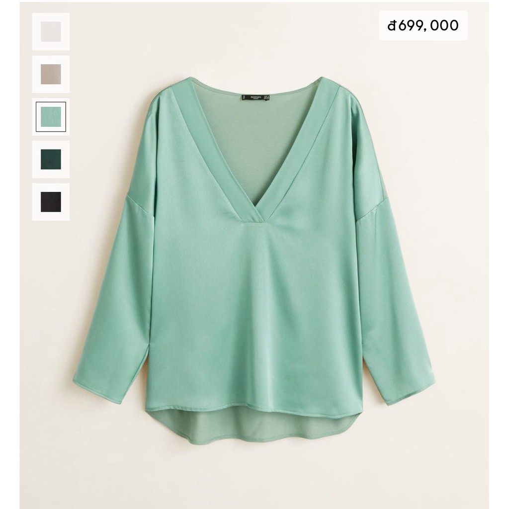 Áo tay dài, vai cánh dơi trễ xuống dịu dàng, cổ viền V sang chảnh & hiện đại👌