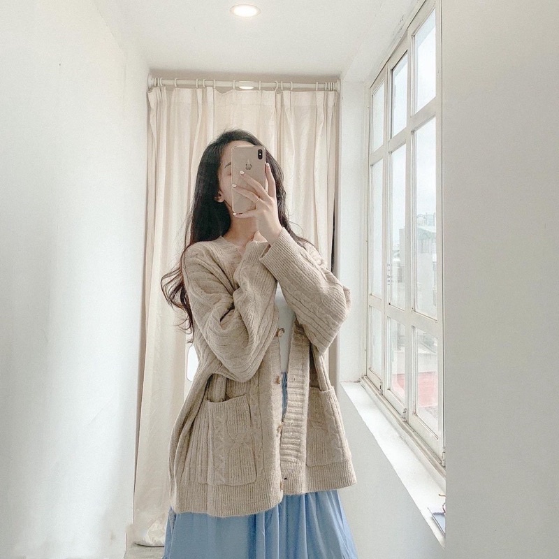 Thời Trang Nữ > Áo khoác > Áo khoác mùa đông || Áo cadigan len vặn thừng cài khuy 2 túi hàng chuẩn QC