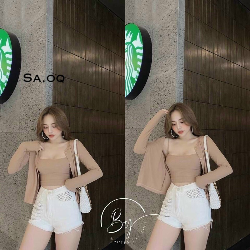 Giới thiệu Áo cardigan croptop tay dài nữ , áo khoác crt ôm body len gân có kèm áo dây G88788