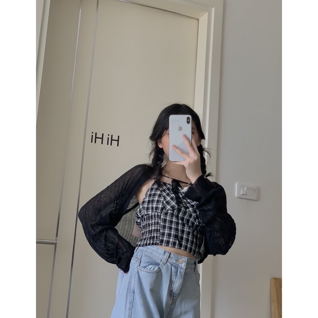 - ÁO CARDIGAN GÂN LƯỚI MỎNG DÁNG LỬNG