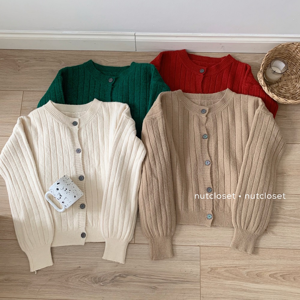 Giới thiệu Áo cardigan len vân dọc cúc ghi _ A0299