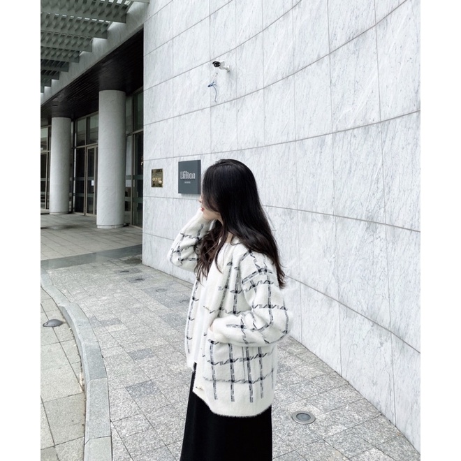 Giới thiệu Áo cardigan lông thỏ hoạ tiết kẻ