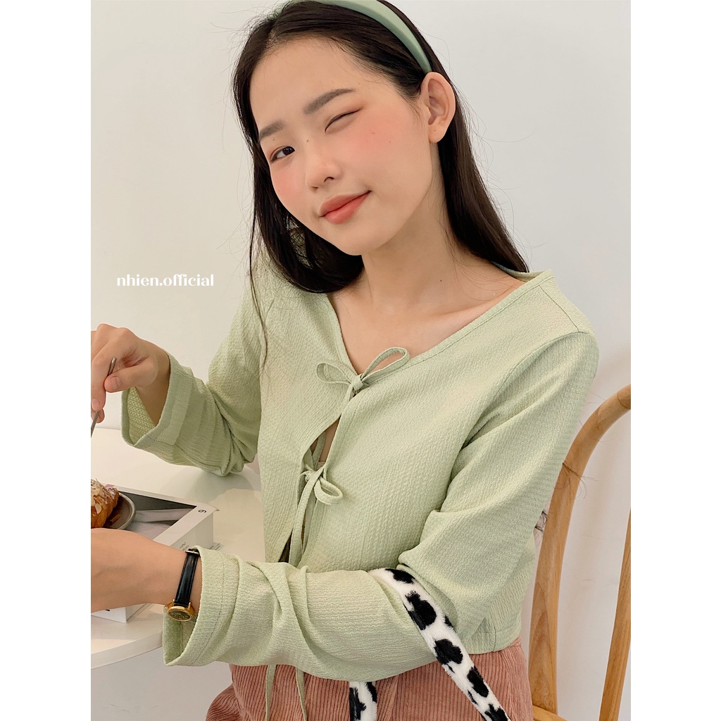 Giới thiệu Áo cardigan nữ kiểu nơ croptop_Nhienvintage BA2