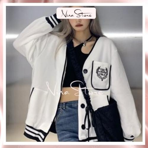 Giới thiệu Áo Cardigan Nữ NinaStore Chất Nỉ Kèm Túi Ngực Phối Viền CBLU Phong Cách Hàn Quốc - SP000608