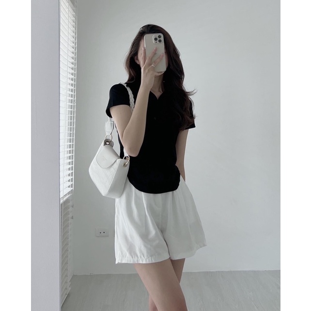 Áo thun cổ polo rất basic mà mix đồ xinh xỉu đây ạ 😍 chất thun co giãn tốt, mềm mại