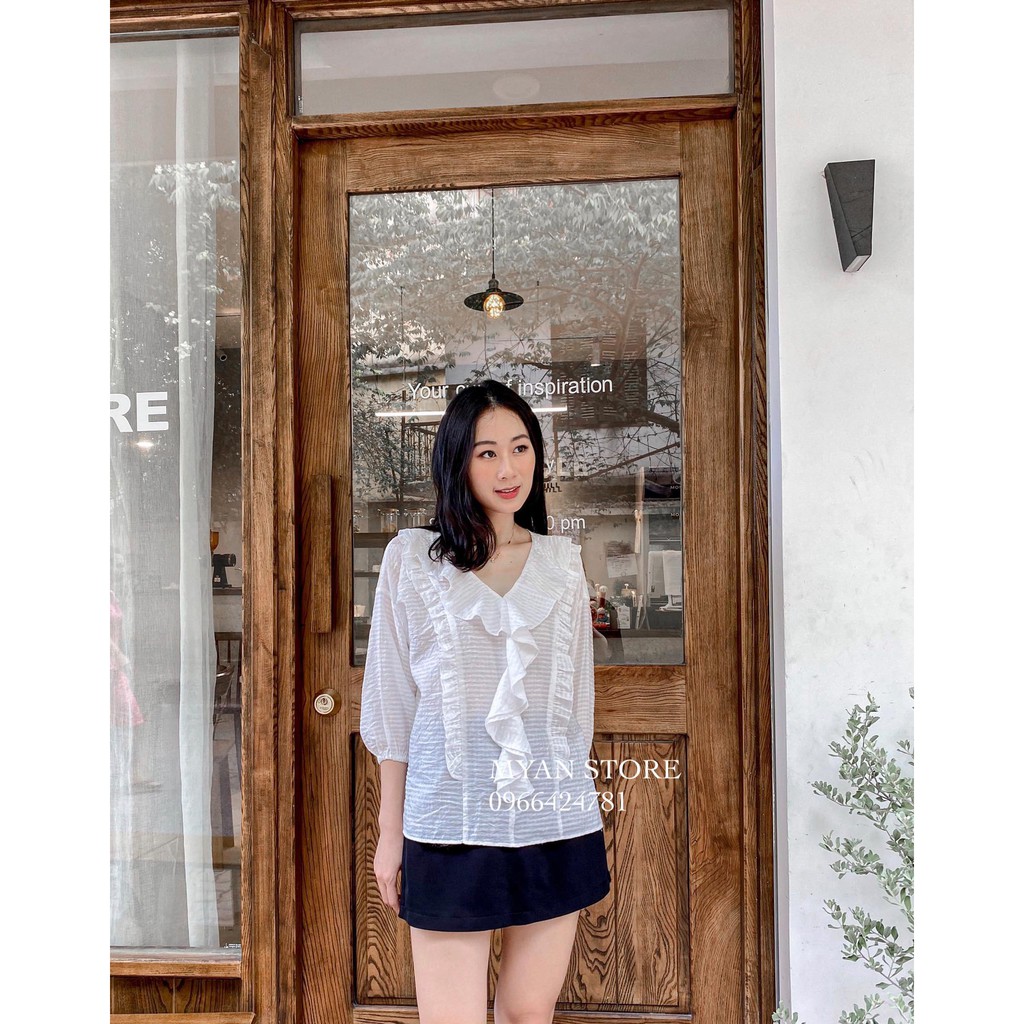 Giới thiệu Áo cổ tim bèo rủ dọc thân chun tay - Avn92004