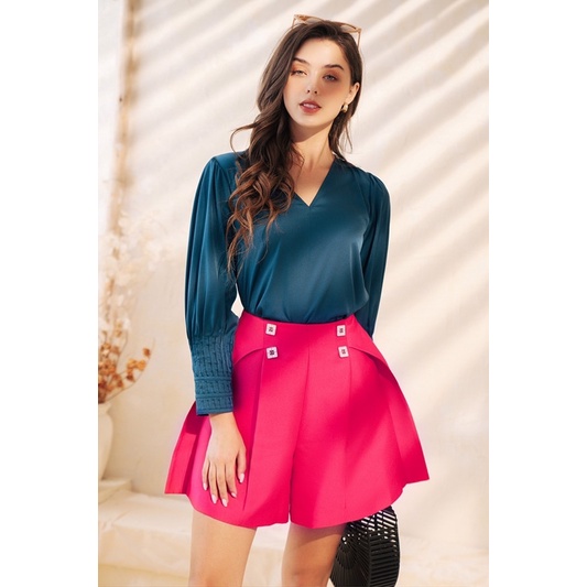 Thời Trang Nữ > Áo > Khác || Áo cổ tim tay bấu li xanh