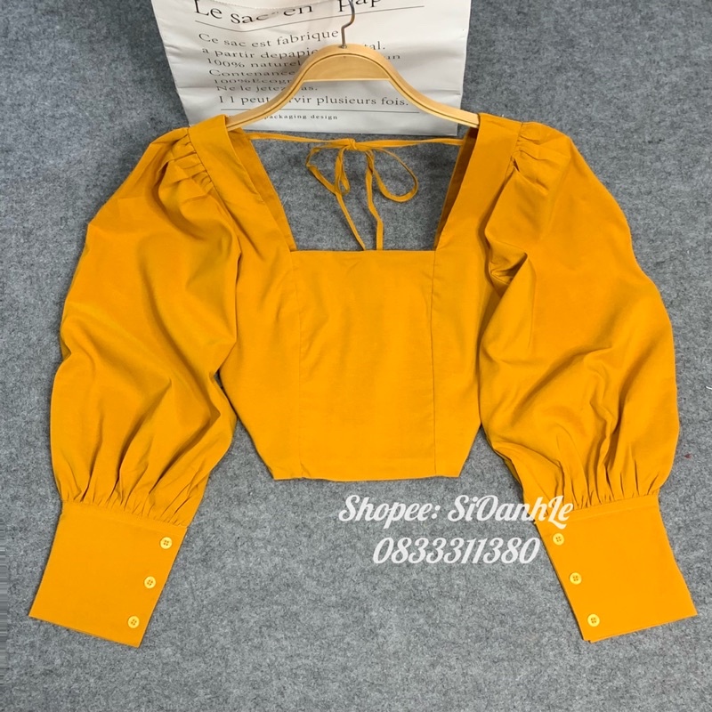 Áo cổ vuông tay phồng thắt nơ sau dáng Croptop A46